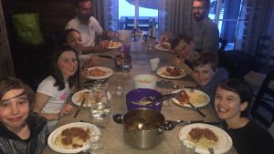 Nous sommes rentrés vers 18.00. Nathan et Gabrielle nous ont préparé le repas (crudités avec du guacamole, des pizzas / salade et des rochers coco).