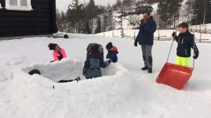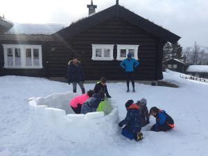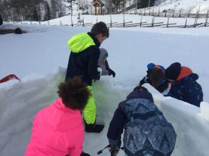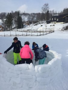 Puis nous avons créé (enfin essayé) un igloo (sans toit car la neige n’était pas compacte).