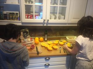 Préparation du petit déjeuner (jus d’orange frais!) + Fabrication de l’igloo… la suite ce soir!