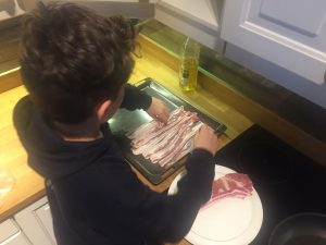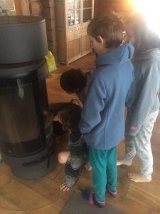 Bon repos, un petit déjeuner anglais préparé par Gabrielle et Nils, rangemant du chalet et départ pour skier.